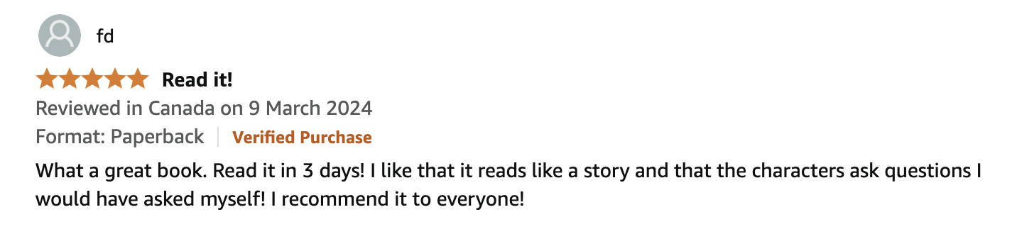 “I like that it reads like a story and that the characters ask questions I would have asked myself!”- FD
