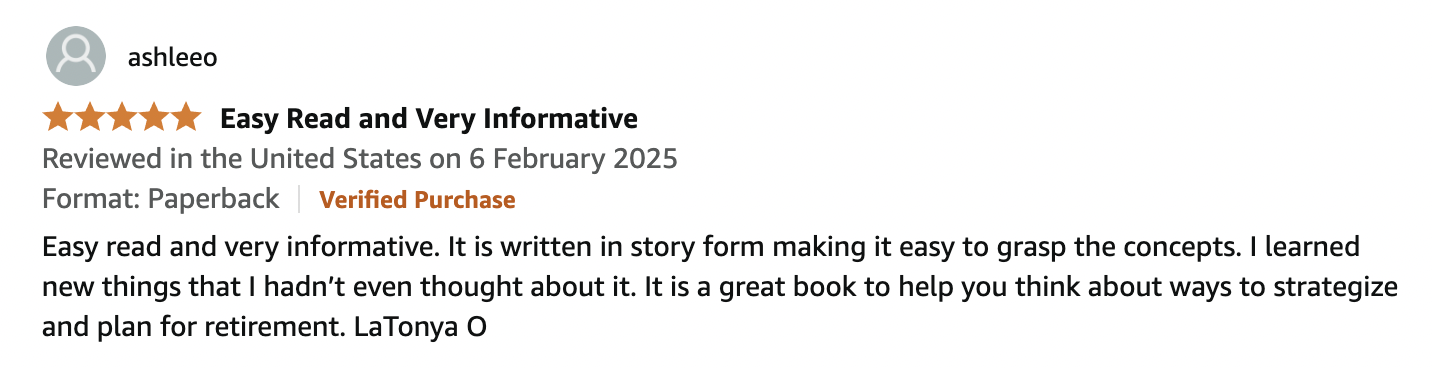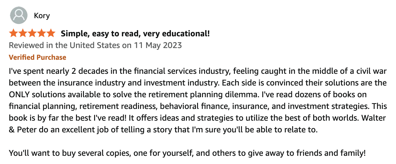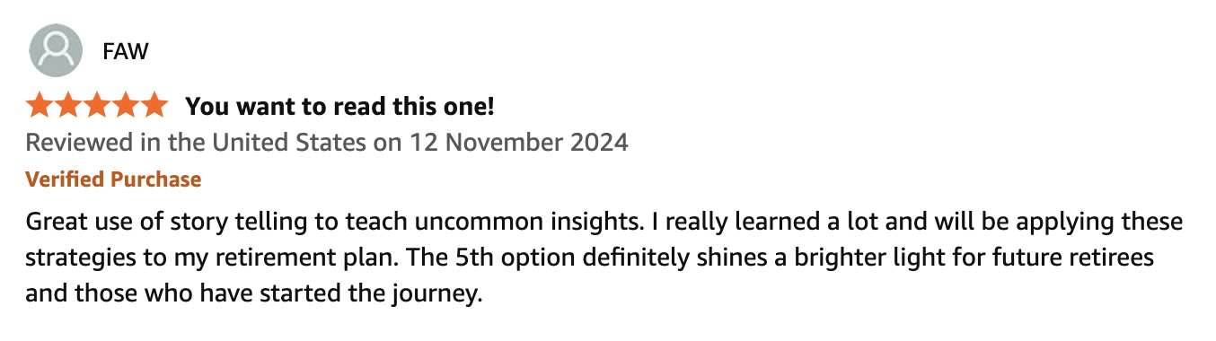 “Great use of story telling to teach uncommon retirement insights.” - Faw